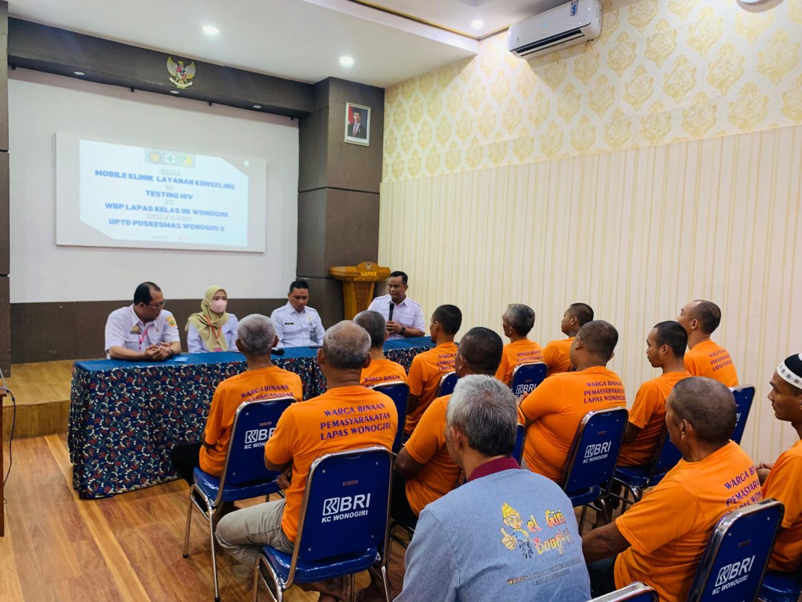 Wonogiri-KabarWonogiri.com – Lembaga Pemasyarakatan (Lapas) Kelas II B Wonogiri bekerja sama dengan UPTD Puskesmas II Wonogiri menggelar kegiatan konseling dan pemeriksaan HIV untuk Warga Binaan Pemasyarakatan (WBP) pada Senin (25/6/2025).