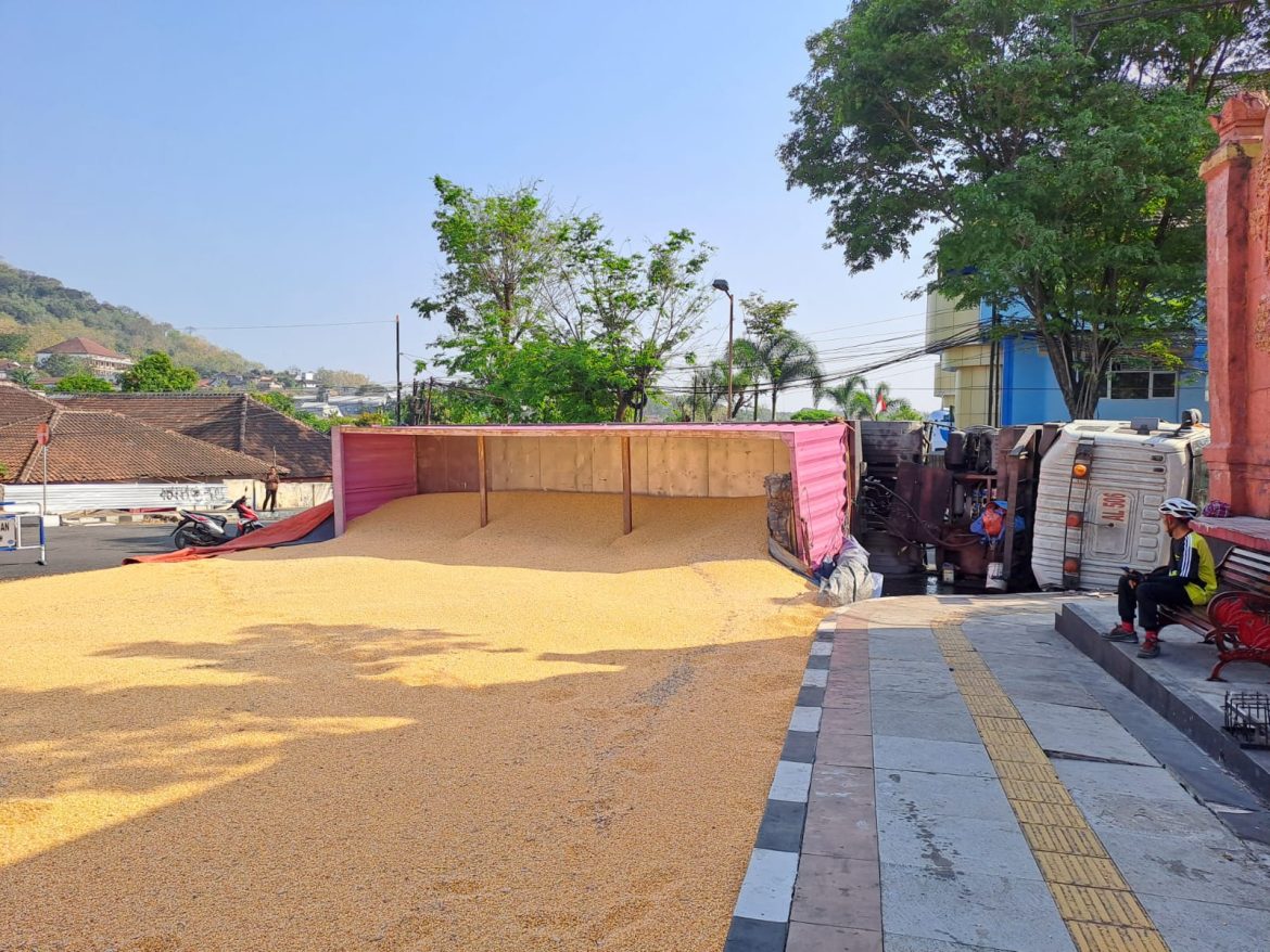 “Tak ada korban jiwa akibat peristiwa itu. Hanya saja, muatan truk berupa jagung tumpah ke jalan,” pungkasnya.