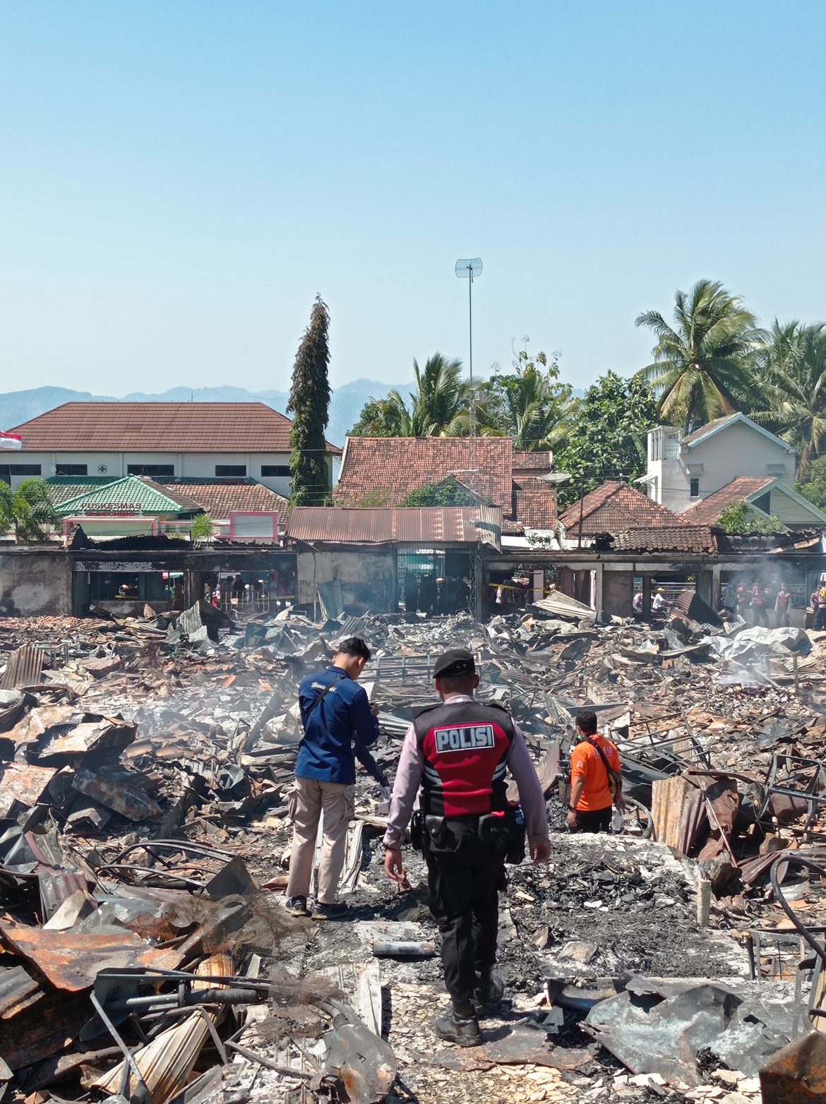 Diketahui, Pasar Slogohimo terbakar pada Kamis (28/9/2023) lalu. Para pedagang pasar yang terdampak kini menempati pasar darurat di halaman pasar.
