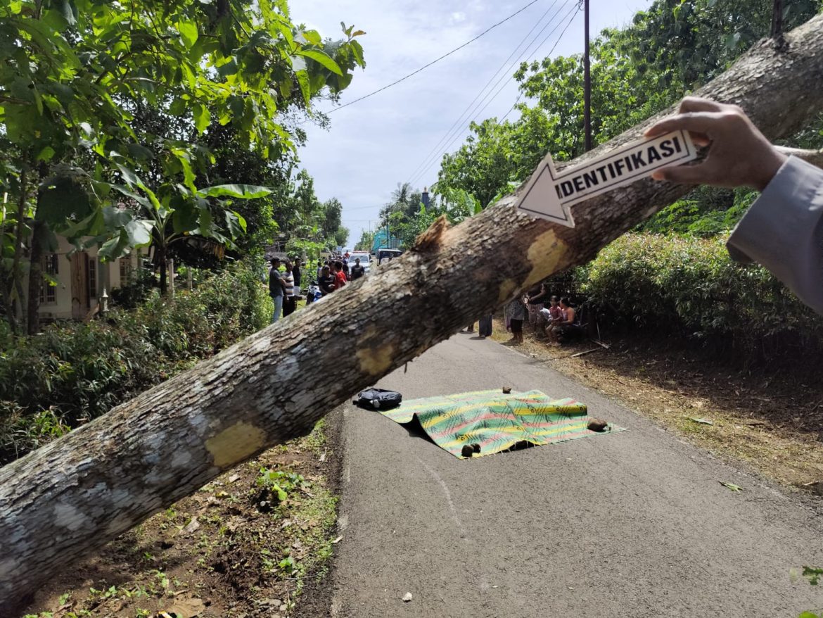 Wonogiri-kabarwonogiri.com-Pemotor di Kecamatan Ngadirojo tewas setelah tertimpa pohon tumbang. Korban mengalami luka serius di kepala.