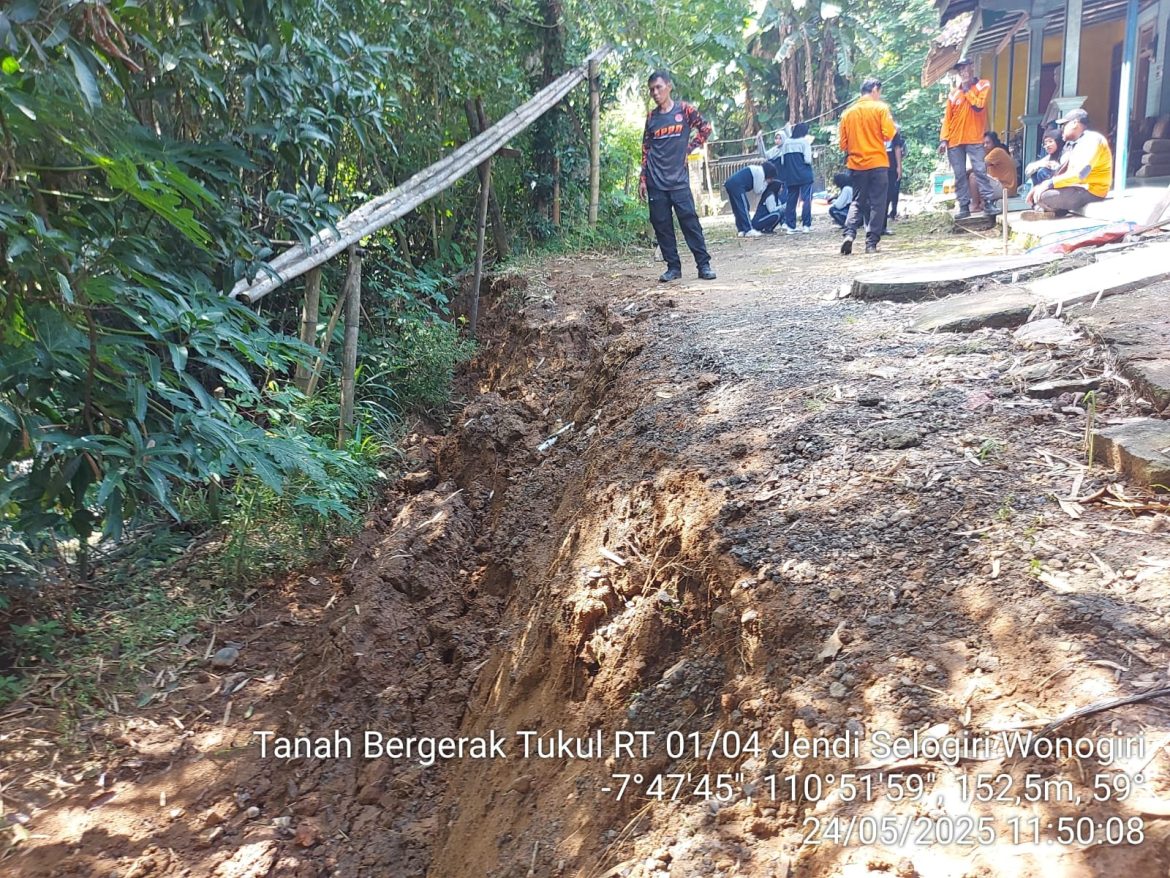 Kepala Pelaksana Badan Penanggulangan Bencana Daerah (BPBD) Wonogiri Fuad Wahyu Pratama mengatakan beberapa waktu lalu pihaknya mendapatkan laporan adanya tanah bergerak di Dusun Tukul RT 001 RW 004 Desa Jendi Kecamatan Selogiri. Kemudian pihaknya melakukan survei awal pada 19 Mei 2025.